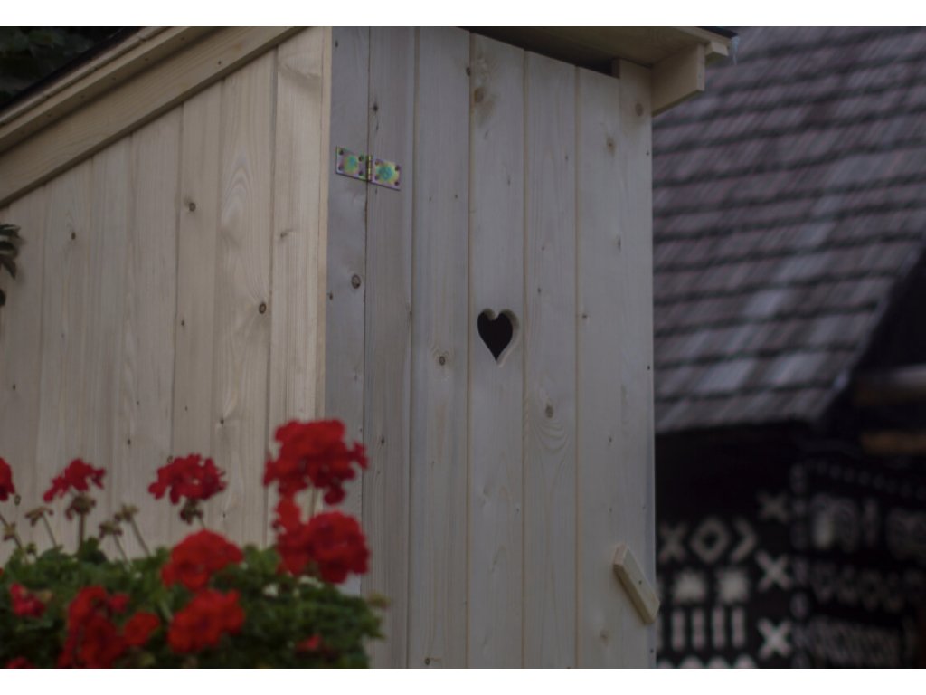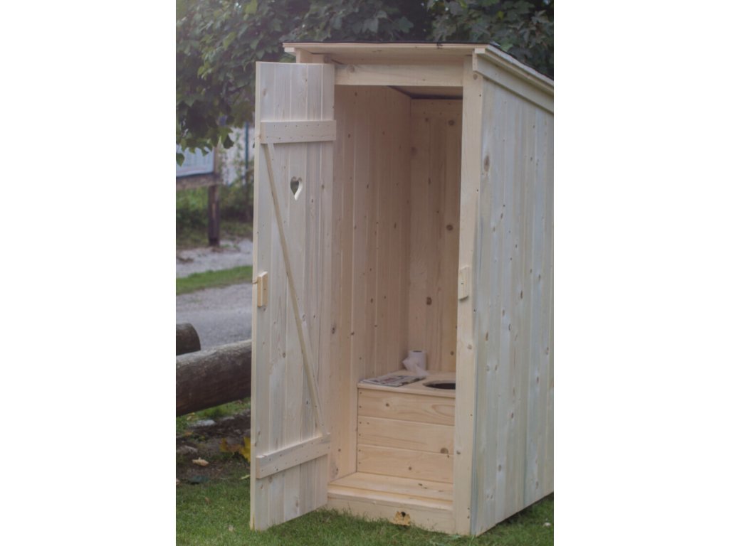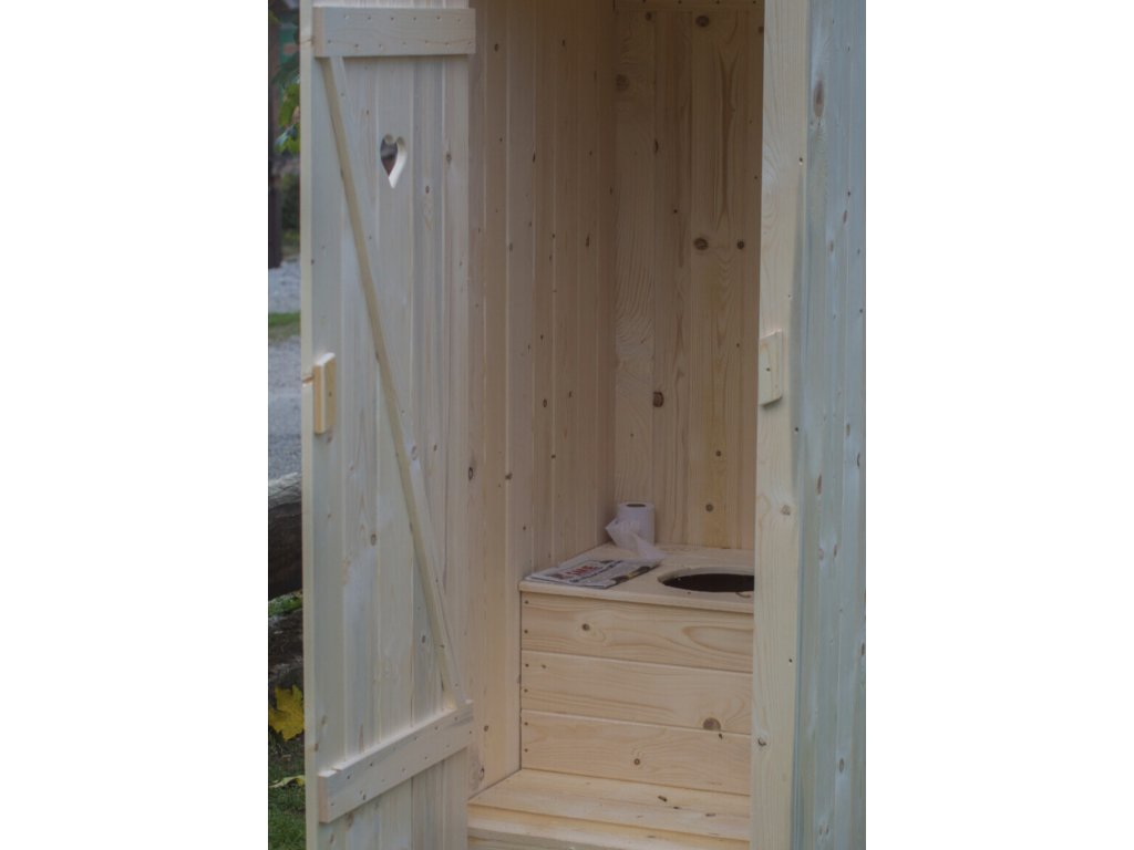 Latrína môže byť vybavená vyklápateľným sedákom, chemickou vložkou. V základnej cene je zahrnuté: samotná latrína, podlaha, hobľované a brúsené sedátko, strecha, strešná krytina (pozinkovaný plech), kovanie, uzatváranie, montážny materiál. To znamená že v cene je kompletná latrína pripravená na používanie.